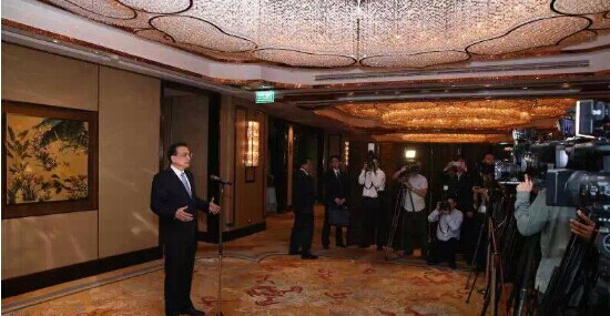 会见中外记者时,李克强说,中国正在由一个主要生产消费品的世界工厂,转而成为一个向世界提供先进装备的大基地、容纳世界优质产品的大市场。希望中泰双方抓紧开展中泰铁路项目前期相关工作,为项目尽早开工奠定良好基础。