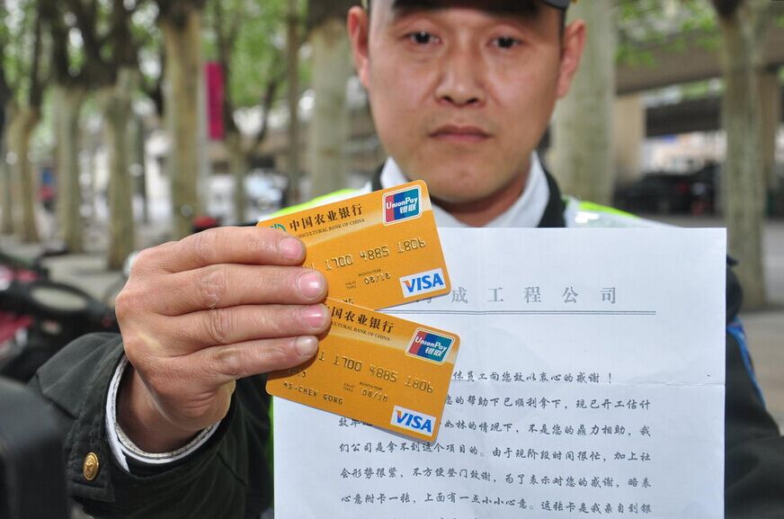 “银行卡是跟一张A4纸一起装在信封内的。”杜岭街巡防队员孙忠吉说,他与同事巡逻到黄河路与健康路口时,在一家饭店门口捡到一个未封口的信封,打开一看,里边有一张纸和一张银行卡,纸上的内容大致为:“四川鸿成工程公司”在投标时,“王处长”予以关照,他们得以中标,为了表示感谢,送上银行卡,略表心意,并附有银行卡密码。